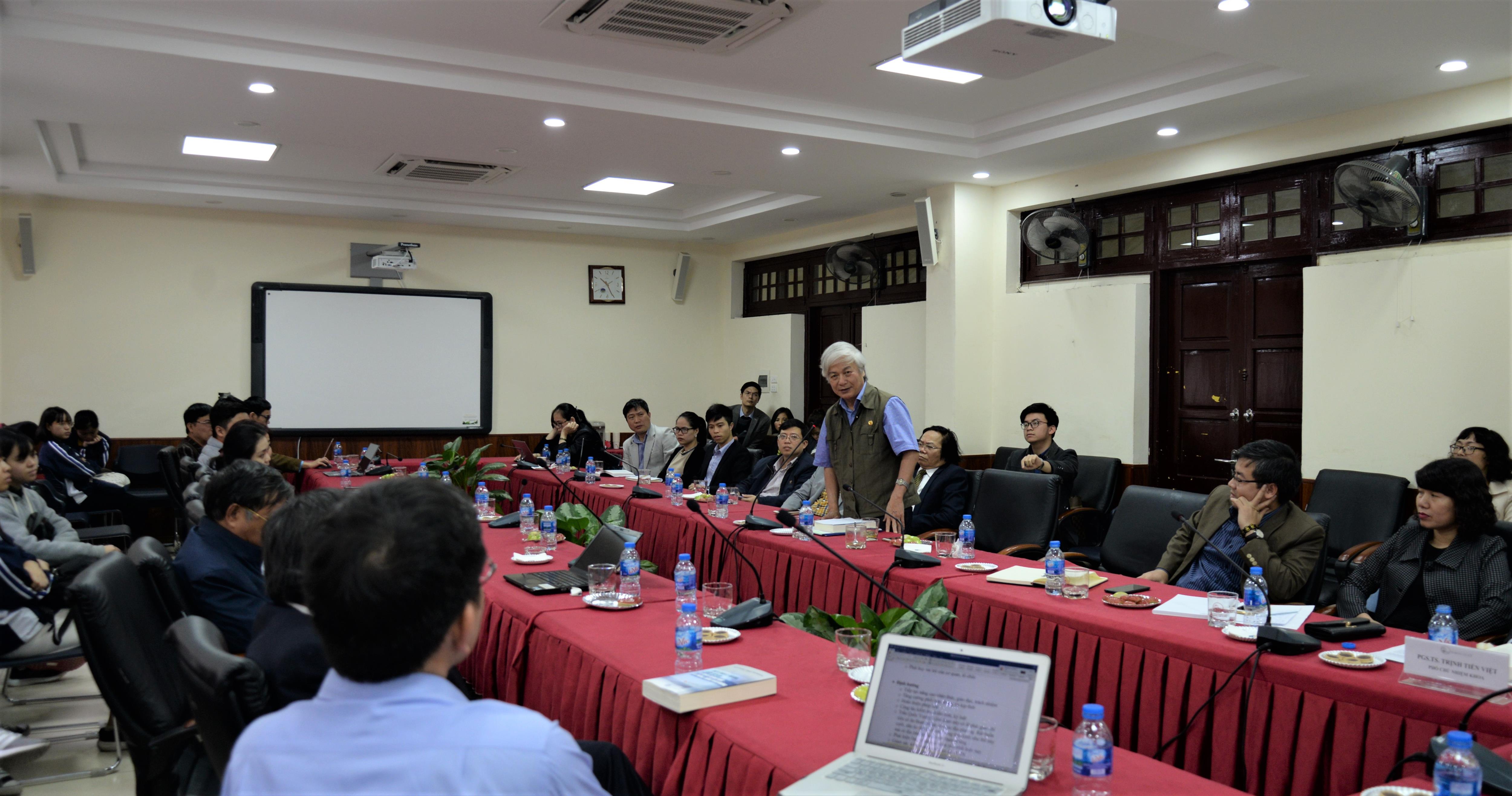 Các nhà khoa học cùng trao đổi sau bài thuyết trình của đồng chí Nguyễn Thái Học