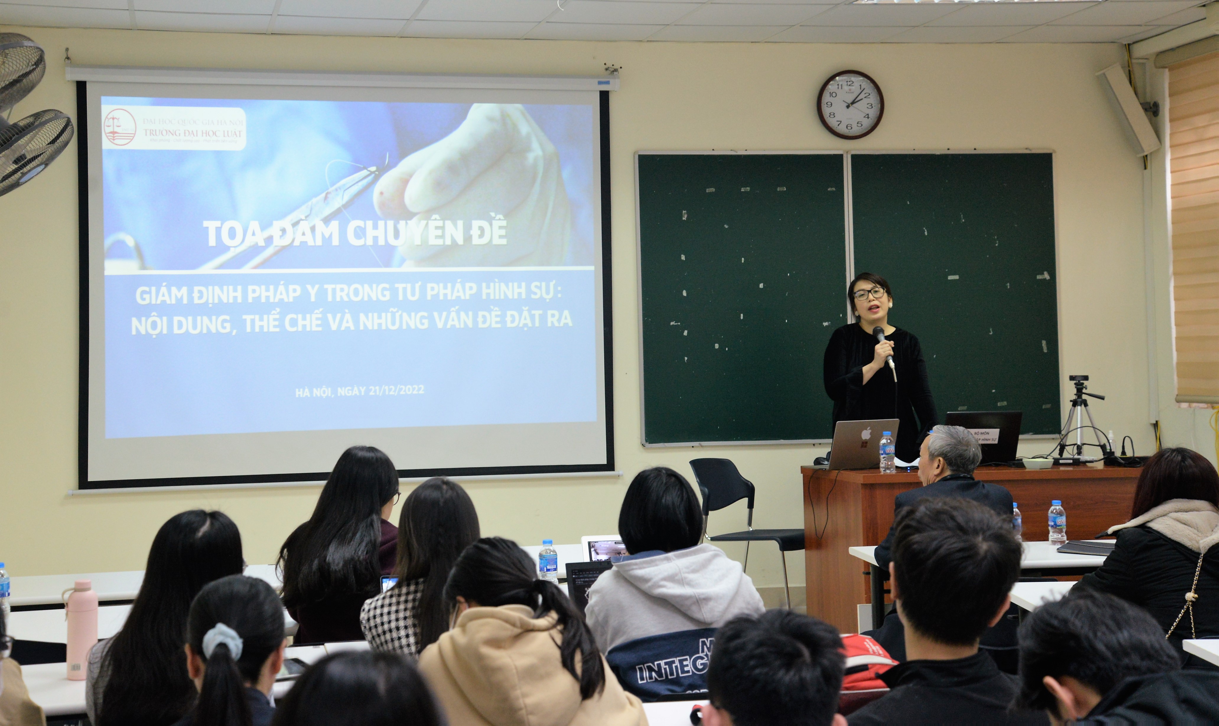 Ngày 21/12/2022, Trường Đại học Luật, Đại học Quốc gia Hà Nội (ĐHQGHN) đã tổ chức Tọa đàm khoa học với chủ đề “Giám định pháp y trong Tư pháp Hình sư”. Tọa đàm do Khoa Tư pháp Hình sự chủ trì tổ chức. Diễn giả của Tọa đàm là TS. Lê Việt Hùng – Giám định viên Tư pháp về pháp y, Nguyễn Giám đốc Trung tâm pháp y Viện Khoa học Hình sự, Bộ Công an.