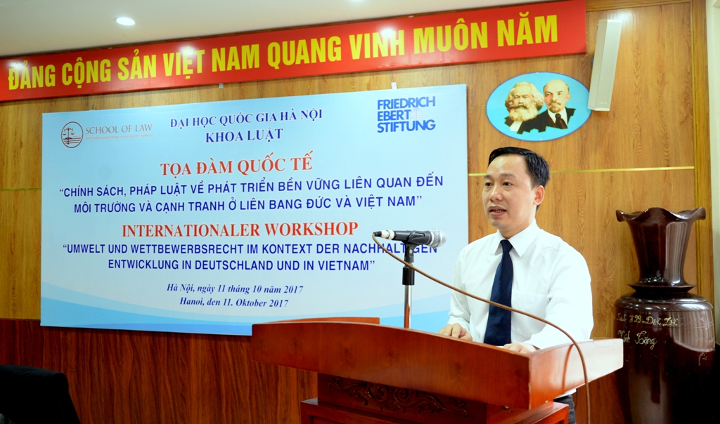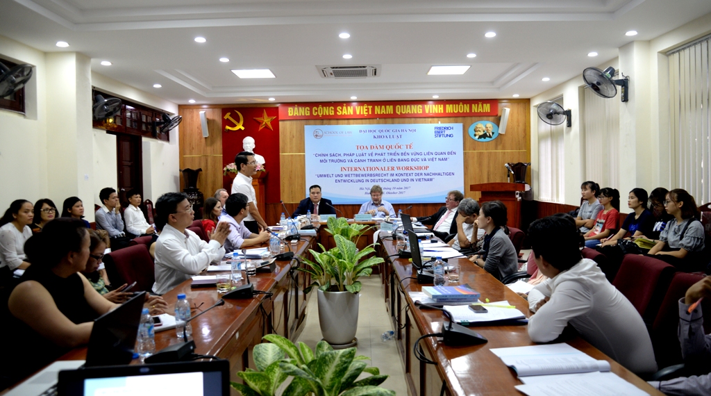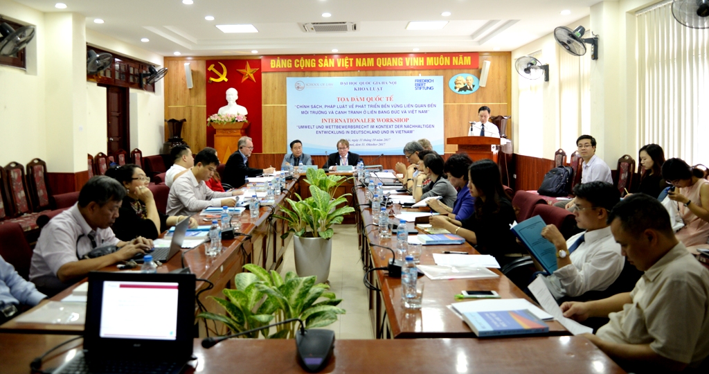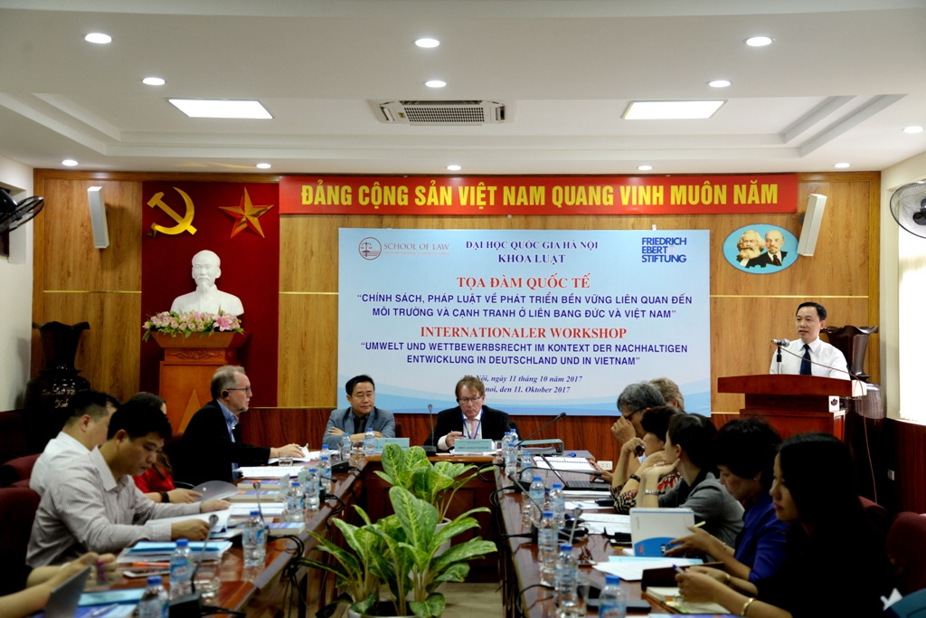 Ngày 11/10/2017, Khoa Luật phối hợp cùng Viện Friedrich-Ebert-Stiftung Liên bang Đức (FES) đã tổ chức buổi Tọa đàm khoa học quốc tế với chủ đề: “Chính sách, pháp luật về phát triển bền vững liên quan đến môi trường và cạnh tranh ở Liên bang Đức và Việt Nam”.