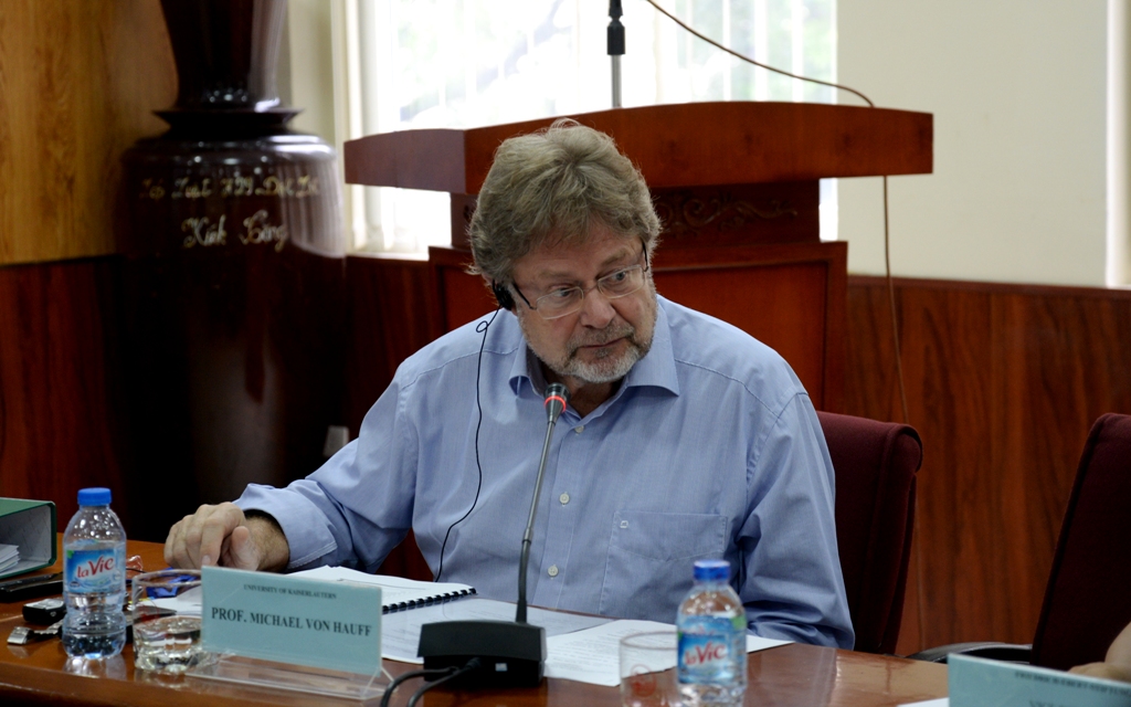 Tại Tọa đàm, GS.TS. Michael von Hauff đã đề cập đến quá trình hình thành Chương trình nghị sự 2030; những nội dung trọng tâm của Chương trình nghị sự 2030; triển khai thực hiện Chương trình nghị sự 2030 và chiến lược phát triển bền vững của Đức trong khuôn khổ Chương trình nghị sự 2030 và khẳng định Chương trình nghị sự 2030 hướng đến tất cả các nước, tất cả các nước đều phải có trách nhiệm trong quá trình chuyển đổi này. Tham luận của PGS. TS. Ngô Huy Cương về “Phát triển bền vững và môi trường pháp lý kinh doanh” đã khẳng định phát triển bền vững là một mục tiêu có tính nguyên tắc trong pháp luật của Việt Nam hiện nay. Việt Nam đã ghi nhận vấn đề phát triển bền vững trong Hiến pháp năm 2013. Tham luận cũng đề cập đến nhận thức về môi trường pháp lý kinh doanh và một số vấn đề cấp bách nhằm bảo đảm phát triển bền vững môi trường pháp lý kinh doanh ở Việt Nam giai đoạn hiện nay, bao gồm: (i) Việc sử dụng kiến thức bản địa trong việc bảo tồn và phát triển rừng; (ii) Về tổ chức tư pháp và (iii) Về phòng, chống tham nhũng và lợi ích nhóm.