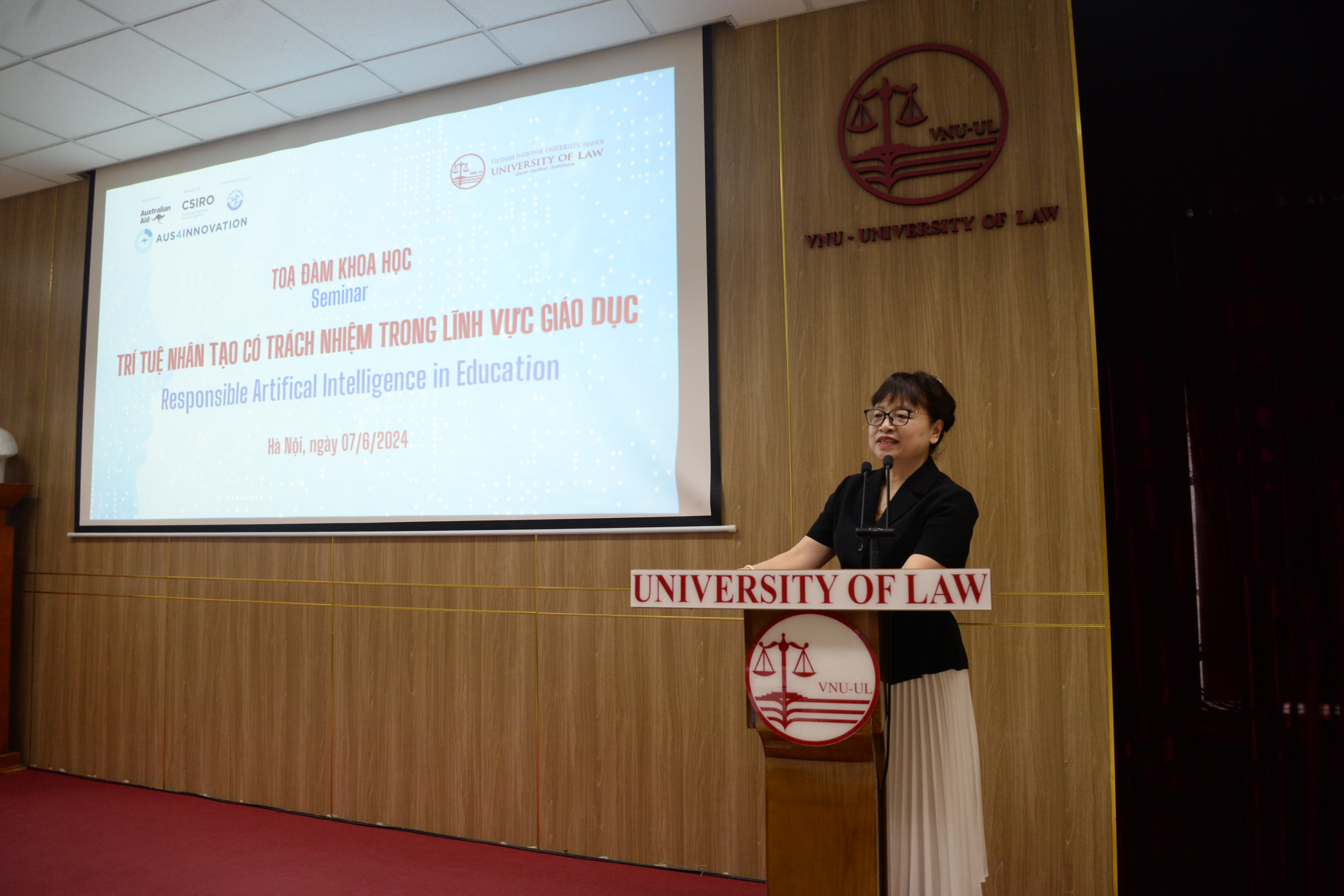 Ngày 07/6/2024, Trường Đại học Luật, ĐHQGHN tổ chức Toạ đàm khoa học “ Trí tuệ nhân tạo có trách nhiệm trong lĩnh vực giáo dục”. Toạ đàm nằm trong khuôn khổ nhiệm vụ “Nghiên cứu xây dựng bộ nguyên tắc và một số hướng dẫn cho phát triển trí tuệ nhân tạo có trách nhiệm ở Việt Nam”, phối hợp tổ chức bởi CSIRO (Cơ quan khoa học quốc gia Úc), Bộ KH&CN và Trường ĐH Luật.