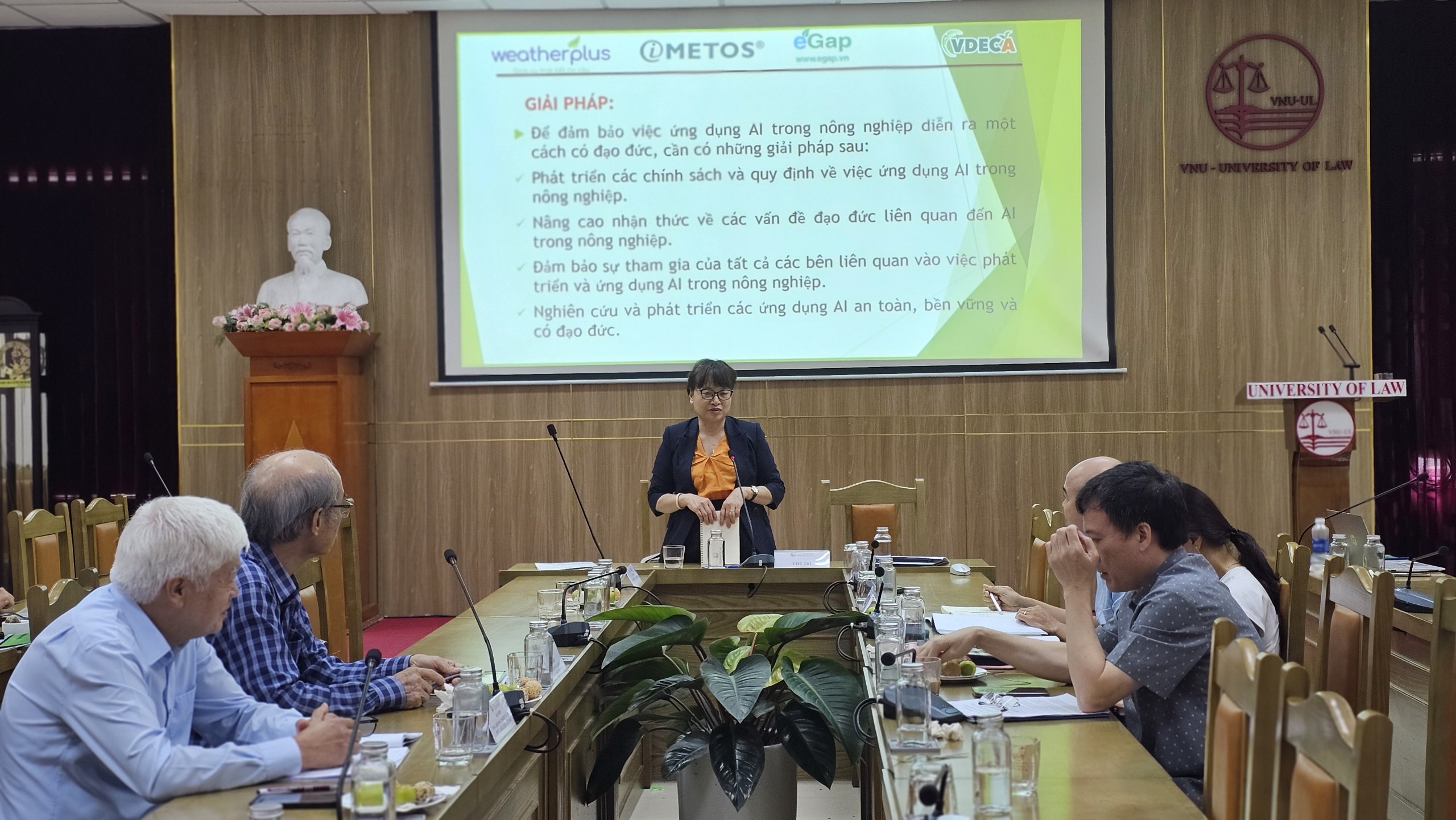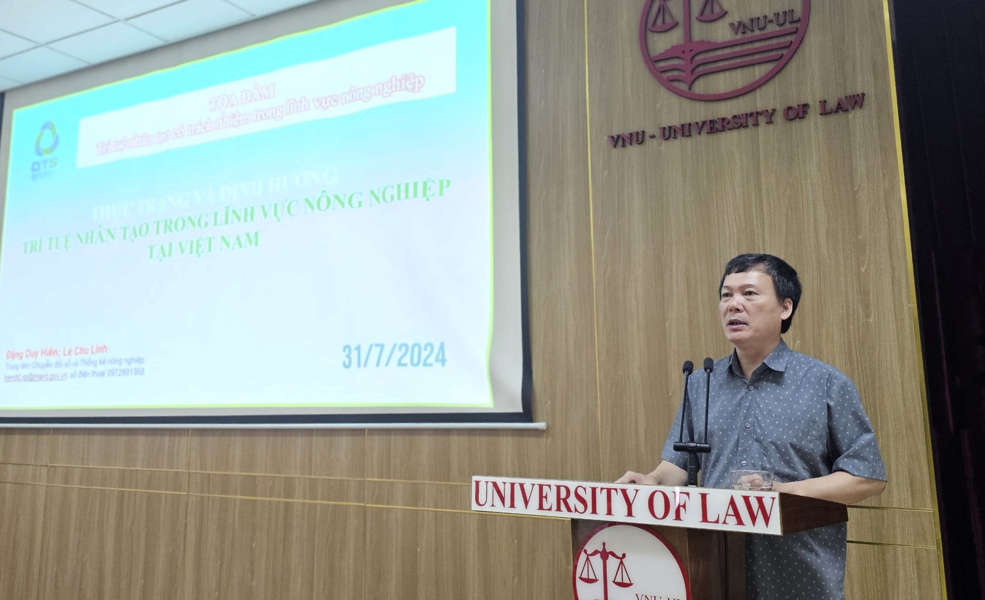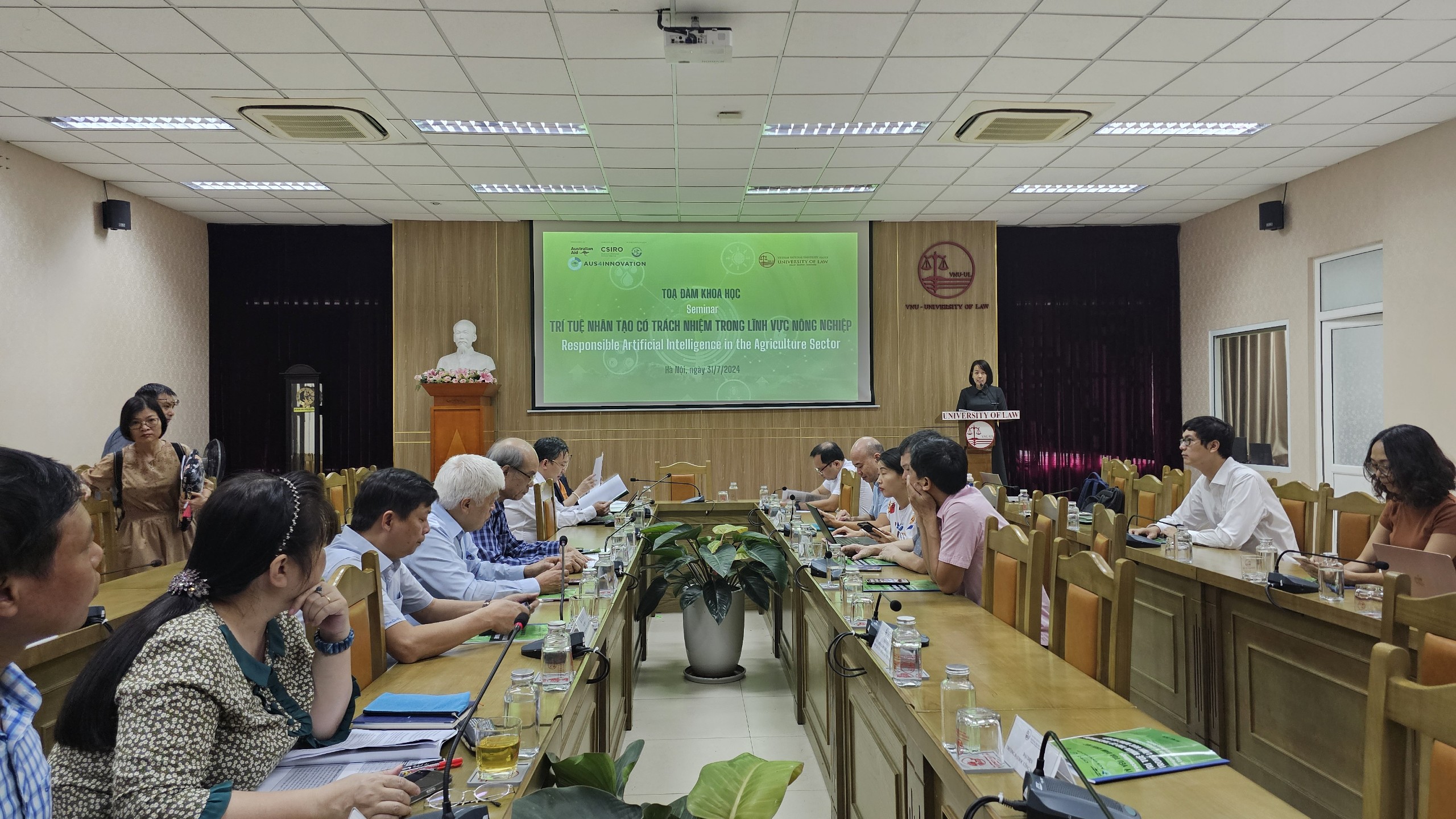 Ngày 31/7/2024, Trường Đại học Luật, ĐHQGHN tổ chức Toạ đàm khoa học “Trí tuệ nhân tạo có trách nhiệm trong lĩnh vực nông nghiệp”. Toạ đàm nằm trong khuôn khổ nhiệm vụ “Nghiên cứu xây dựng bộ nguyên tắc và một số hướng dẫn cho phát triển trí tuệ nhân tạo có trách nhiệm ở Việt Nam”, phối hợp tổ chức bởi CSIRO (Cơ quan khoa học quốc gia Úc), Bộ KH&CN và Trường ĐH Luật.