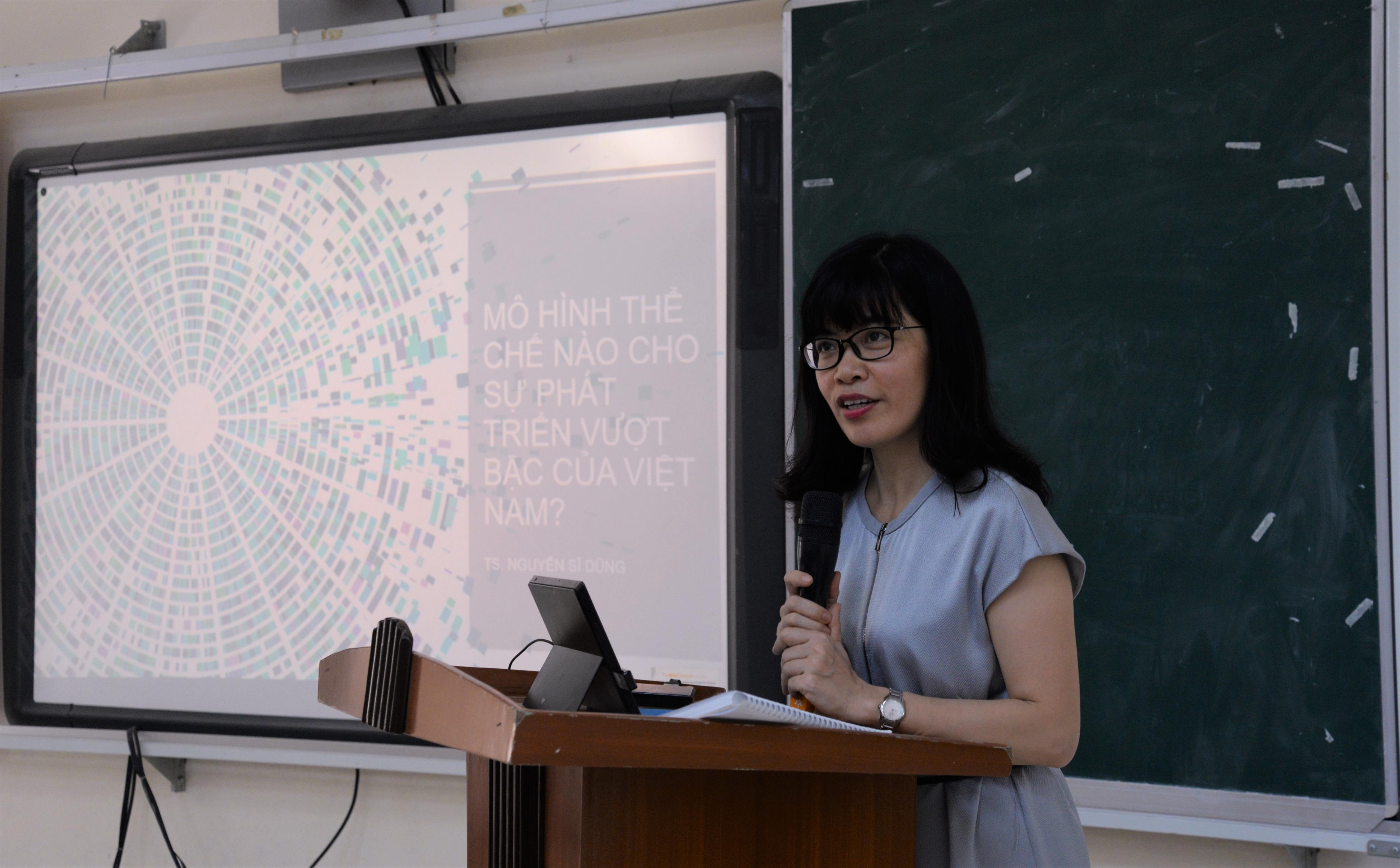 Tại Tọa đàm, TS. Nguyễn Sỹ Dũng trình bày tham luận về “Mô hình thể chế nào cho sự phát triển vượt bậc của Việt Nam”. Theo TS. Nguyễn Sỹ Dũng hiện nay có rất nhiều mô hình thể chế và yếu tố quyết định việc hình thành thể chế nào ở một quốc gia phụ thuộc chính vào nền tảng văn hóa của quốc gia đó. Hay có thể nói, nền tảng văn hóa là nguyên nhân căn bản nhất cho việc định hình thể chế phù hợp cho mỗi quốc gia. Vậy câu hỏi đặt ra là, nền tảng văn hóa của Việt Nam phù hợp với mô hình thể chế nào? Từ những phân tích về mặt địa lý, văn hóa, lịch sử của Việt Nam TS. Nguyễn Sỹ Dũng cho rằng “nếu Việt Nam theo mô hình nhà nước kiến tạo phát triển thì có khả năng sẽ hóa rồng sau 10-15 năm”. Lý giải về nhận định trên, TS. Nguyễn Sỹ Dũng đã phân tích khái niệm và đặc điểm của nhà nước kiến tạo phát triển từ đó đối chiếu với những nền tảng văn hóa của Việt nam nói riêng và nền văn hóa Đông Bắc Á nói chung trong lịch sử như: Sự ảnh hưởng của Nho giáo, mô hình tập quyền cho trung ương, truyền thống khoa bảng và đội ngũ công chức tinh hoa.