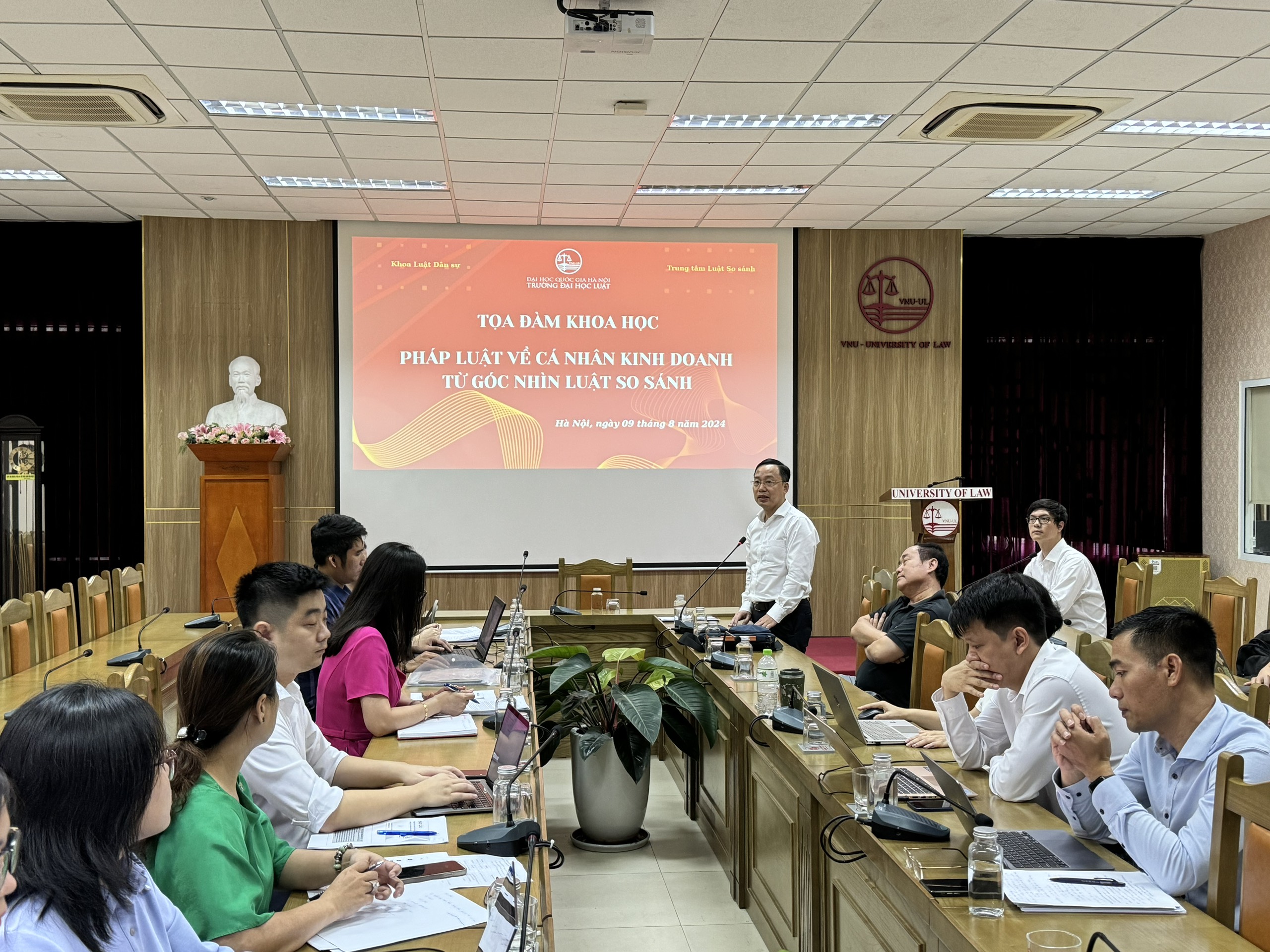 Ngày 9/8/2024, Khoa Luật Dân sự phối hợp với Trung tâm nghiên cứu luật so sánh và Cục Quản lý đăng ký kinh doanh (Bộ Kế hoạch và Đầu tư) tổ chức Tọa đàm “Pháp luật về cá nhân kinh doanh: Từ góc nhìn luật so sánh”.