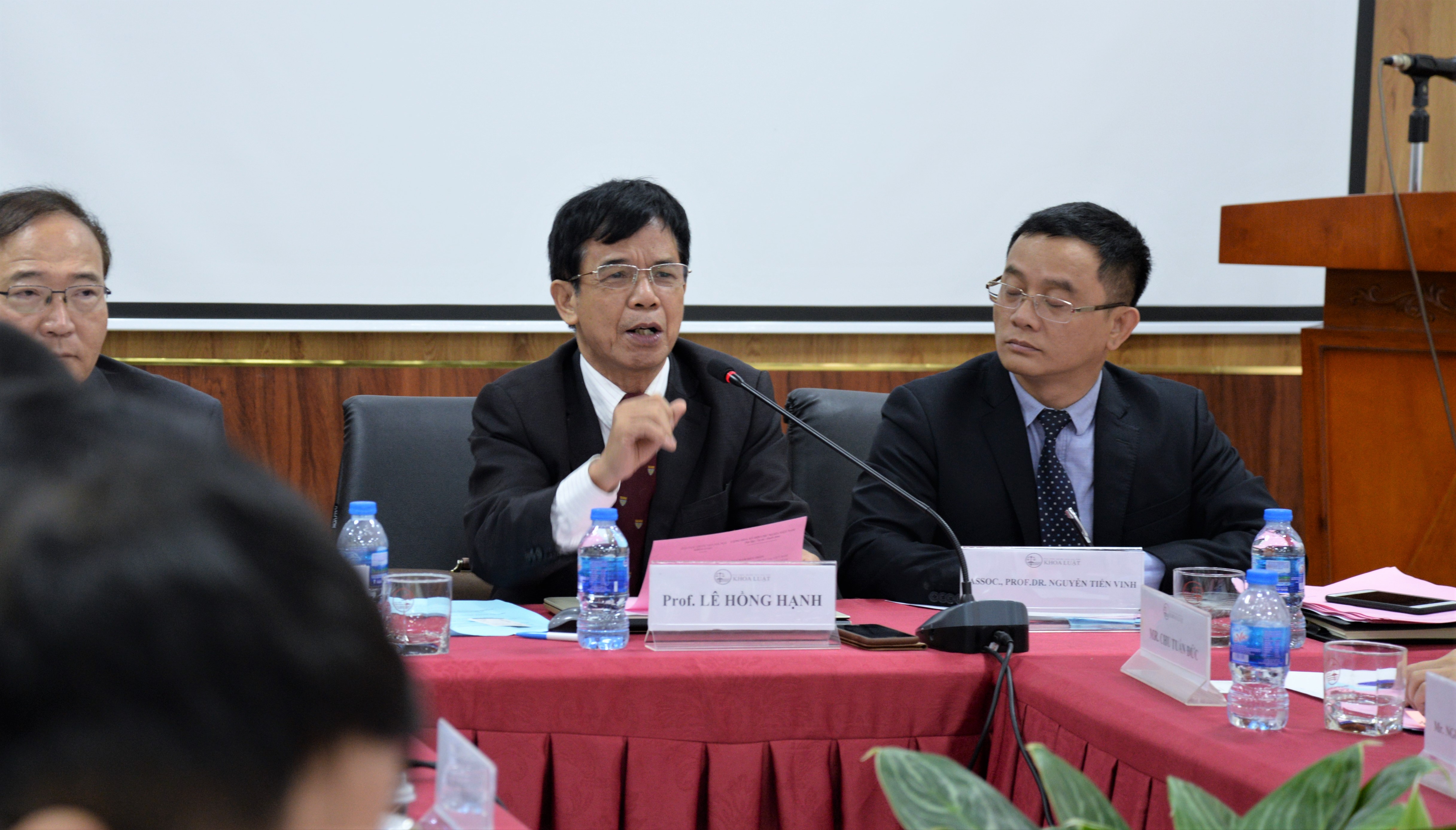 Tham dự Tọa đàm có GS. Kyung Han Sohn đến từ Đại học SungKyunKwan, Hàn Quốc cùng các chuyên gia từ các đơn vị đào tạo, nghiên cứu và làm công tác thực tiễn liên quan đến lĩnh vực thương mại quốc tế: GS.TS. Lê Hồng Hạnh – Viện trưởng Viện nghiên cứu Pháp luật và Kinh tế ASEAN, Ông Nguyễn Hồng Tuyến – Vụ trưởng Vụ các vấn đề chung về xây dựng pháp luật, Bộ Tư pháp, Ông Chu Tuấn Đức – Phó Vụ trưởng Vụ Pháp luật và Điều ước quốc tế, Bộ Ngoại giao, Ông Trương Thế Côn – Phó Giám đốc Học viện Tư pháp,…Về phía Khoa Luật có PGS.TS. Trịnh Tiến Việt – Phó Chủ nhiệm Khoa; PGS.TS. Nguyễn Tiến Vinh – Chủ nhiệm Bộ môn Luật Quốc tế, TS. Mai Văn Thắng – Phó trưởng Phòng QLKH&HTPT, GS.TS. Nguyễn Bá Diến – Giám đốc Trung tâm Luật biển và Hàng hải quốc tế,..
