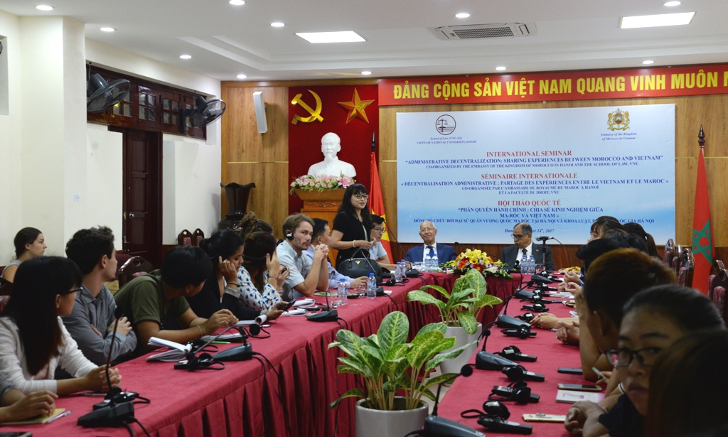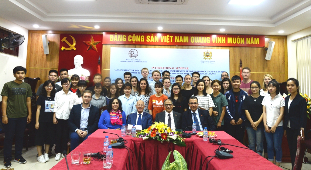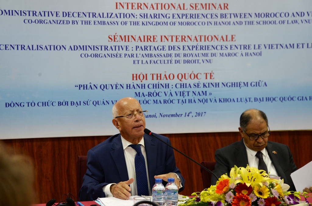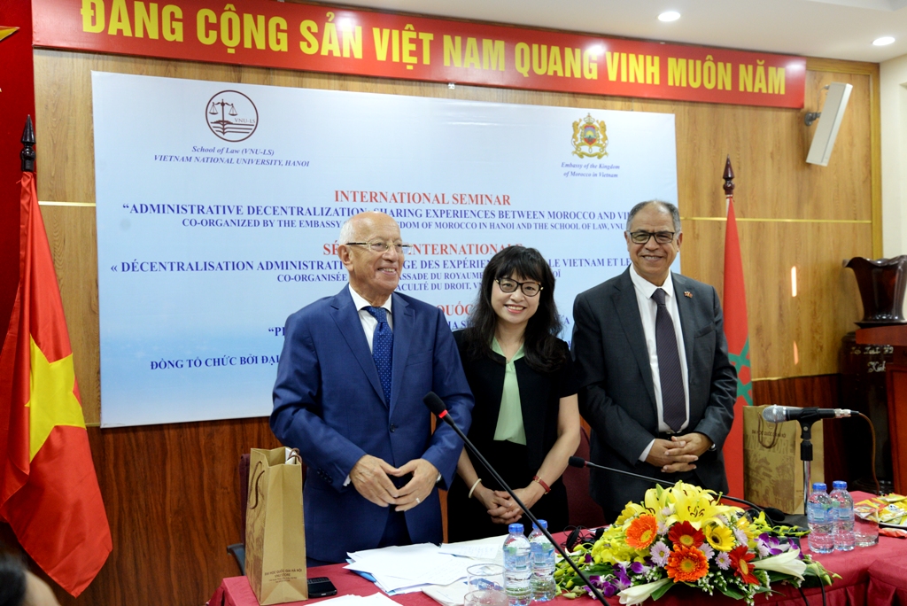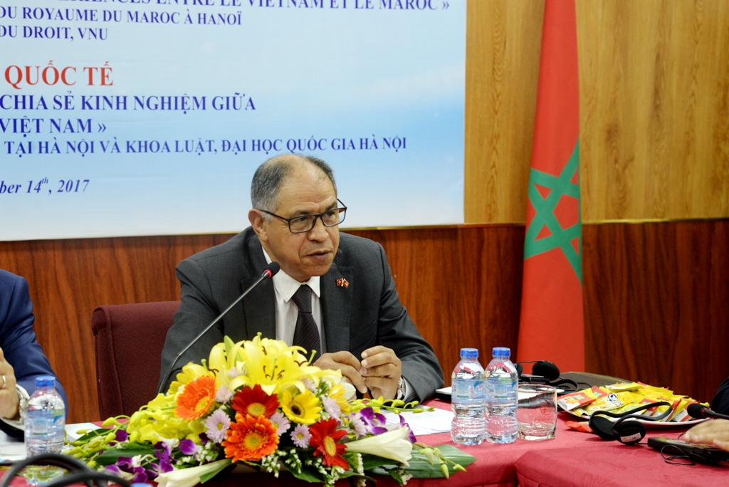 Ngày 15/11/2017 tại Khoa Luật Đại học Quốc gia Hà Nội (ĐHQGHN) đã diễn ra buổi Tọa đàm của với sự tham gia của 02 học giả đến từ Ma-rốc là: GS. Hassan Ouazzani Chahdi – thành viên của Ủy ban Luật pháp Quốc tế của Liên Hiệp Quốc và GS. Driss Gueraoui – Tổng thư ký Hội đồng Kinh tế, Xã hội và Môi trưởng của Ma-rốc với chủ đề “Thực tiễn về điều ước quốc tế của Ma-rốc” và “Kinh tế vương quốc Ma-rốc-những triển vọng và thách thức”.
