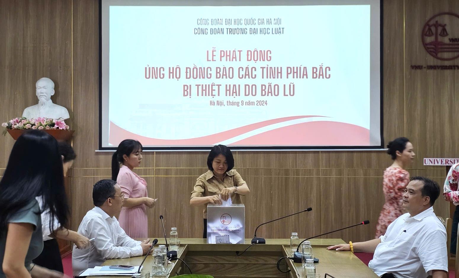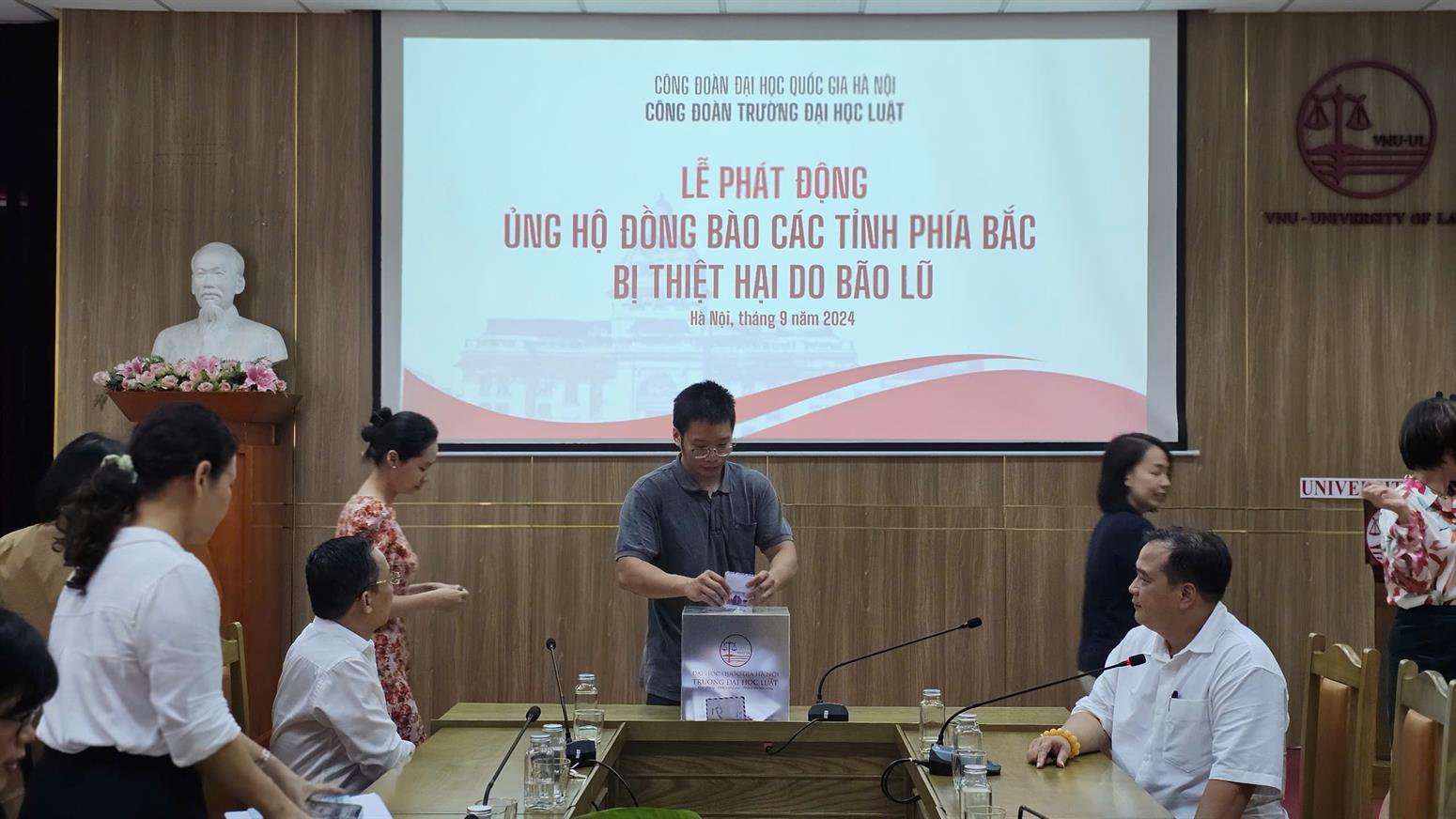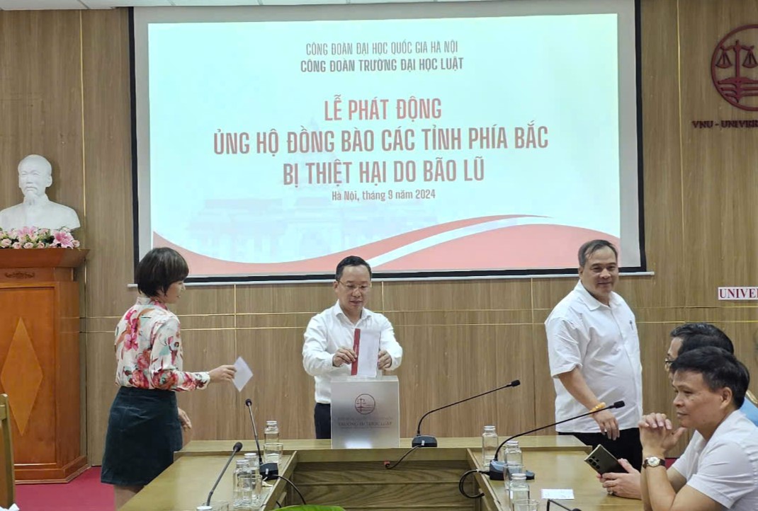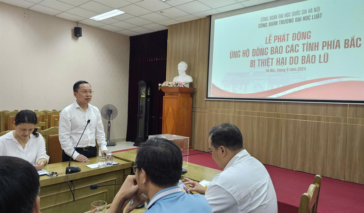 Hưởng ứng lời kêu gọi của Tổng Bí thư, Chủ tịch nước và Đoàn Chủ tịch Ủy ban Trung ương Mặt trận Tổ quốc Việt Nam, sáng ngày 13/9/2024, Công đoàn Trường Đại học Luật, ĐHQGHN tổ chức Lễ phát động ủng hộ đồng bào các tỉnh phía Bắc bị thiệt hại do bão.