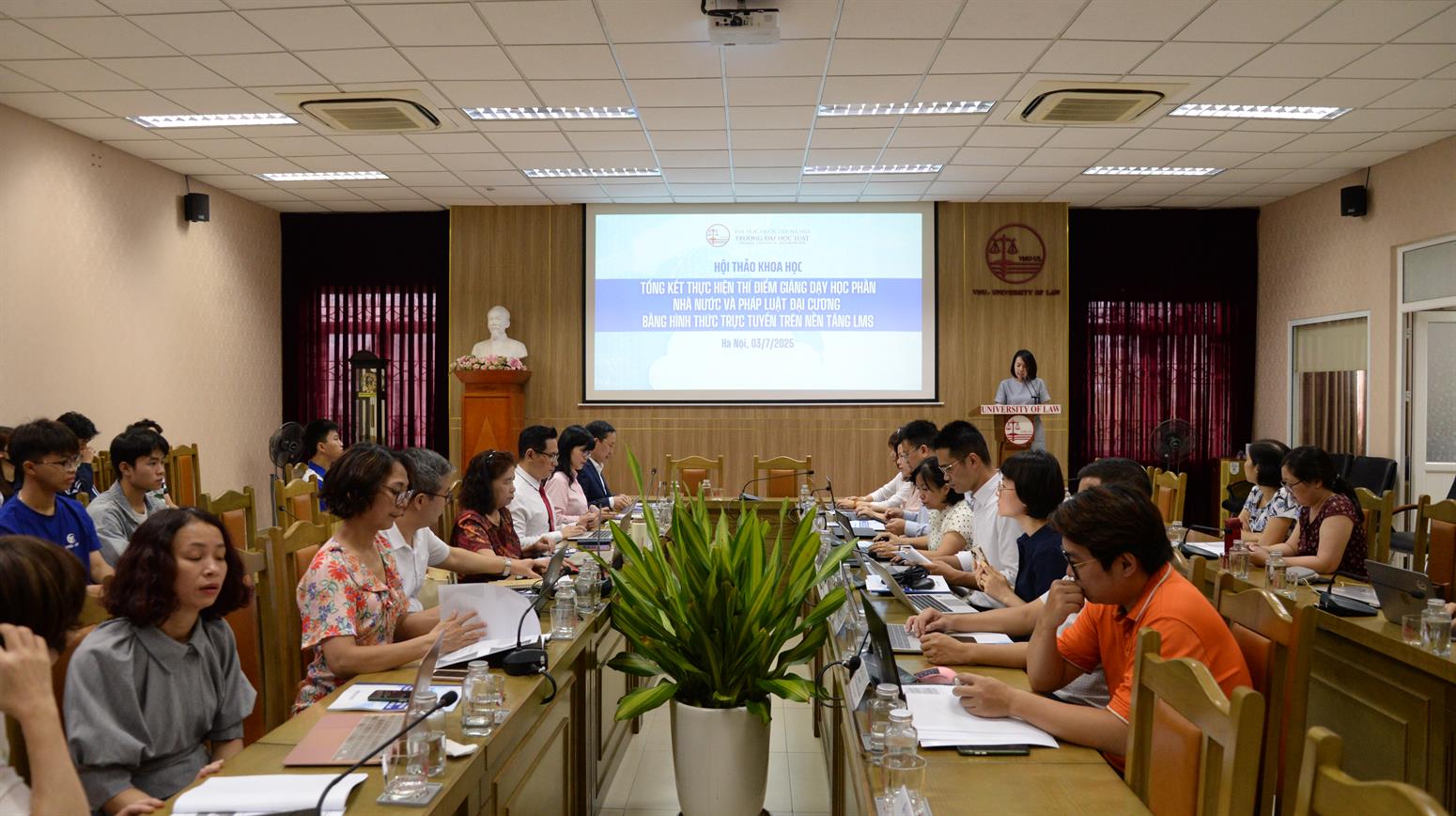 Sáng ngày 03/7/2025, tại Hội trường 703 nhà E1, Trường Đại học Luật – Đại học Quốc gia Hà Nội tổ chức Hội thảo khoa học “Tổng kết thực hiện thí điểm giảng dạy học phần Nhà nước và Pháp luật đại cương bằng hình thức trực tuyến trên nền tảng LMS”. Hội thảo là dịp tổng kết, đánh giá quá trình triển khai học phần này trong bối cảnh chuyển đổi số giáo dục đại học, đồng thời chia sẻ kinh nghiệm, trao đổi các định hướng đổi mới, hoàn thiện mô hình đào tạo trực tuyến các học phần chung trong toàn ĐHQGHN.