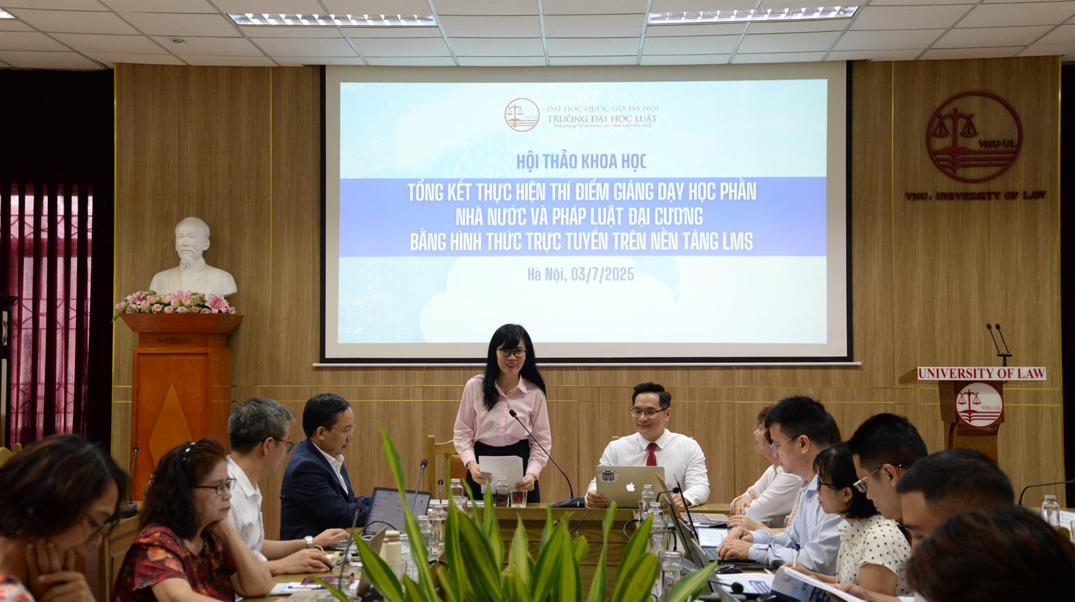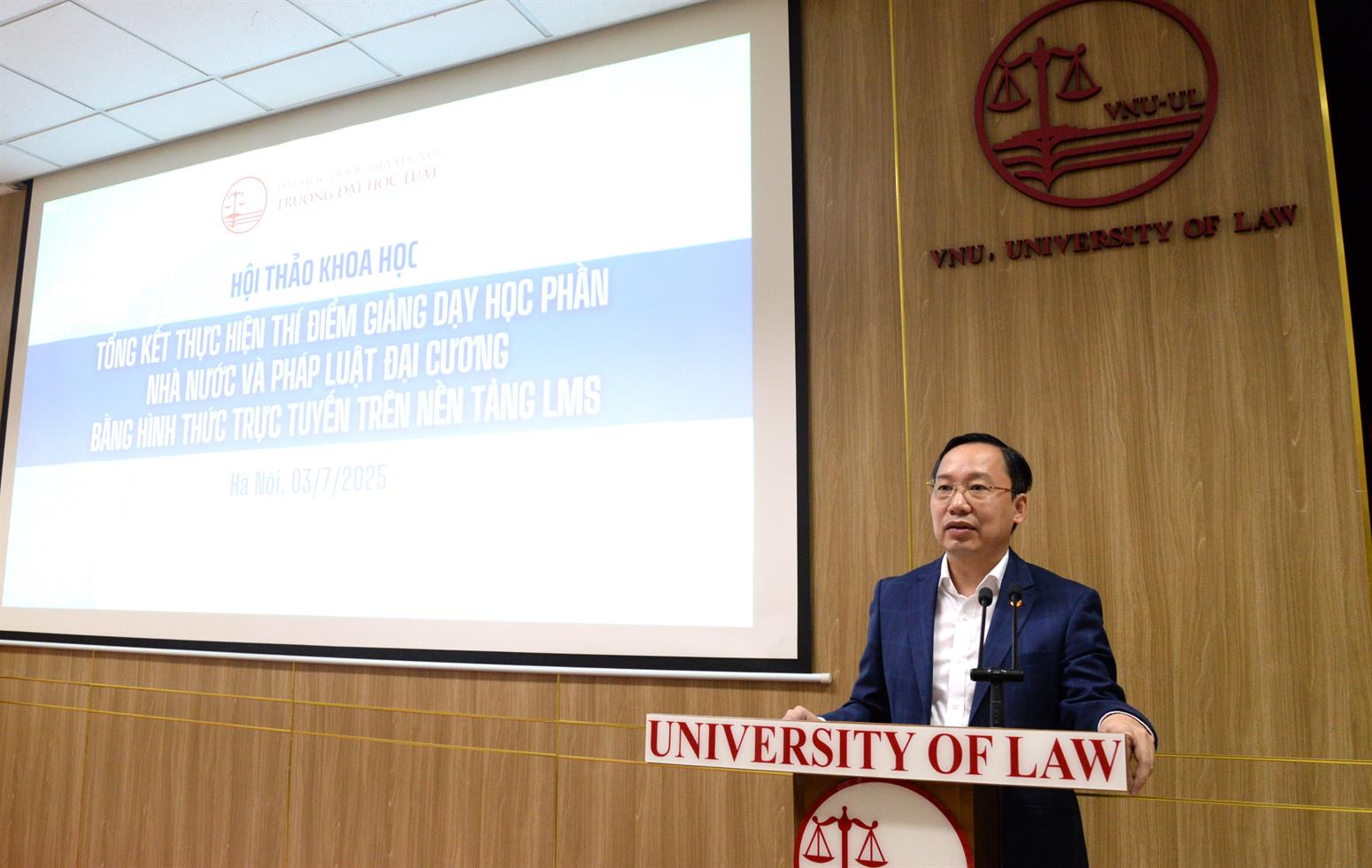 Sáng ngày 03/7/2025, tại Hội trường 703 nhà E1, Trường Đại học Luật – Đại học Quốc gia Hà Nội tổ chức Hội thảo khoa học “Tổng kết thực hiện thí điểm giảng dạy học phần Nhà nước và Pháp luật đại cương bằng hình thức trực tuyến trên nền tảng LMS”. Hội thảo là dịp tổng kết, đánh giá quá trình triển khai học phần này trong bối cảnh chuyển đổi số giáo dục đại học, đồng thời chia sẻ kinh nghiệm, trao đổi các định hướng đổi mới, hoàn thiện mô hình đào tạo trực tuyến các học phần chung trong toàn ĐHQGHN.