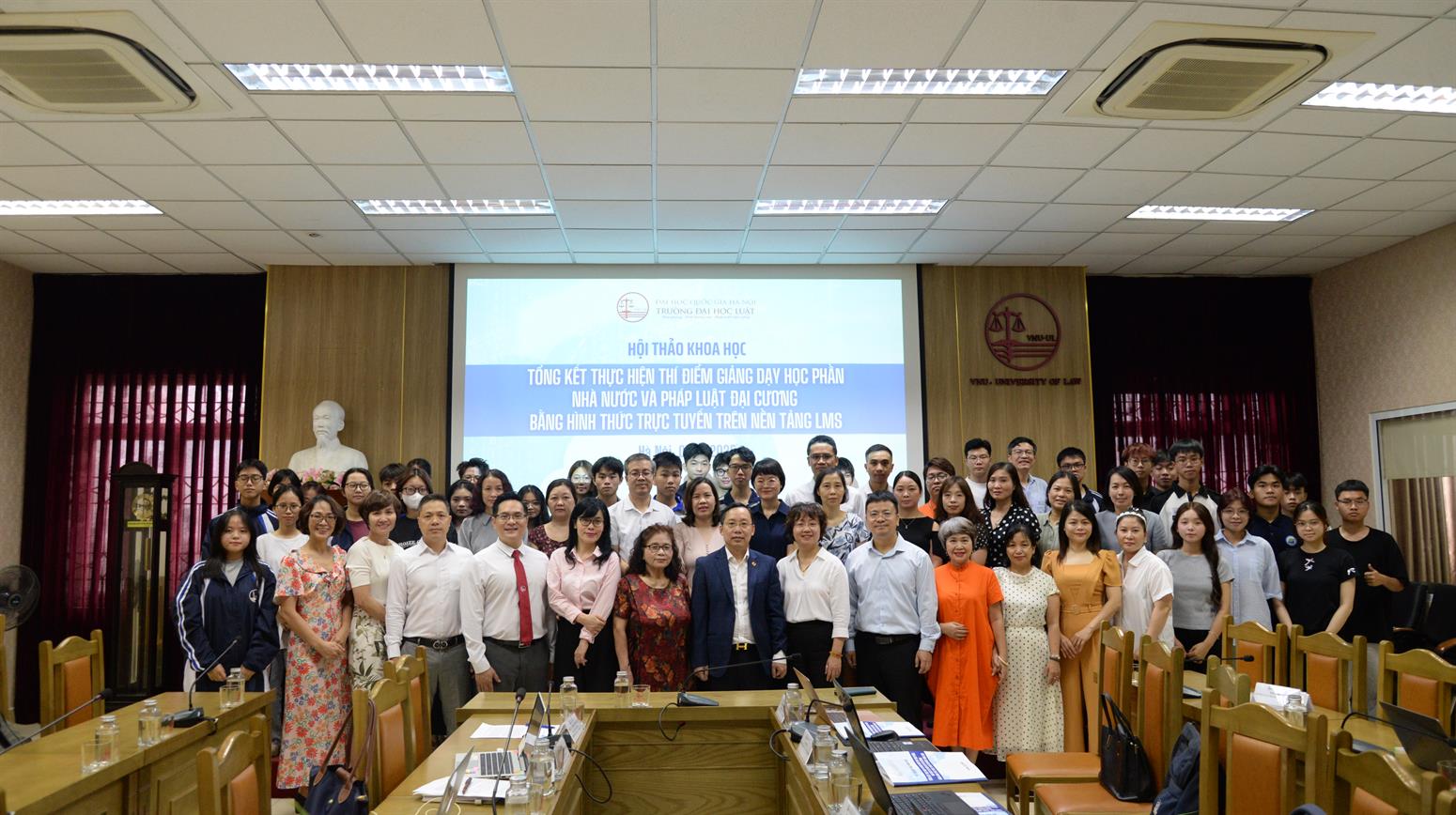 Bên cạnh đó, Hội thảo cũng nhấn mạnh vai trò quan trọng trong phối hợp giữa các đơn vị liên quan trong việc triển khai học phần: (i) Lãnh đạo ĐHQGHN, Ban Đào tạo ĐHQGHN, Lãnh đạo Trường Đại học Luật chỉ đạo và điều phối triển khai học phần trên quy mô toàn hệ thống; (ii) Viện Đào tạo số và Khảo thí phối hợp, hỗ trợ kỹ thuật, tổ chức thi, đảm bảo chất lượng giảng dạy; (iii) Các trường thành viên (Trường ĐH KHTN, KHXH&NV, Trường Đại học Ngoại ngữ, Trường ĐH Kinh tế, …) chịu trách nhiệm quản lý học tập, hỗ trợ sinh viên và phối hợp triển khai lớp học; (iv) Các giảng viên của Khoa LLLSNN&PL – Trường ĐH Luật trực tiếp giảng dạy và quản lý lớp học; Ngoài ra là sự kết hợp của một số đơn vị liên quan như Ban Tài chính & Đầu tư.
