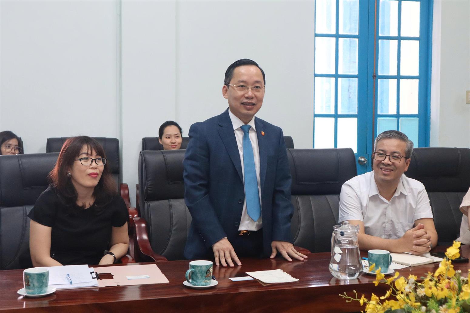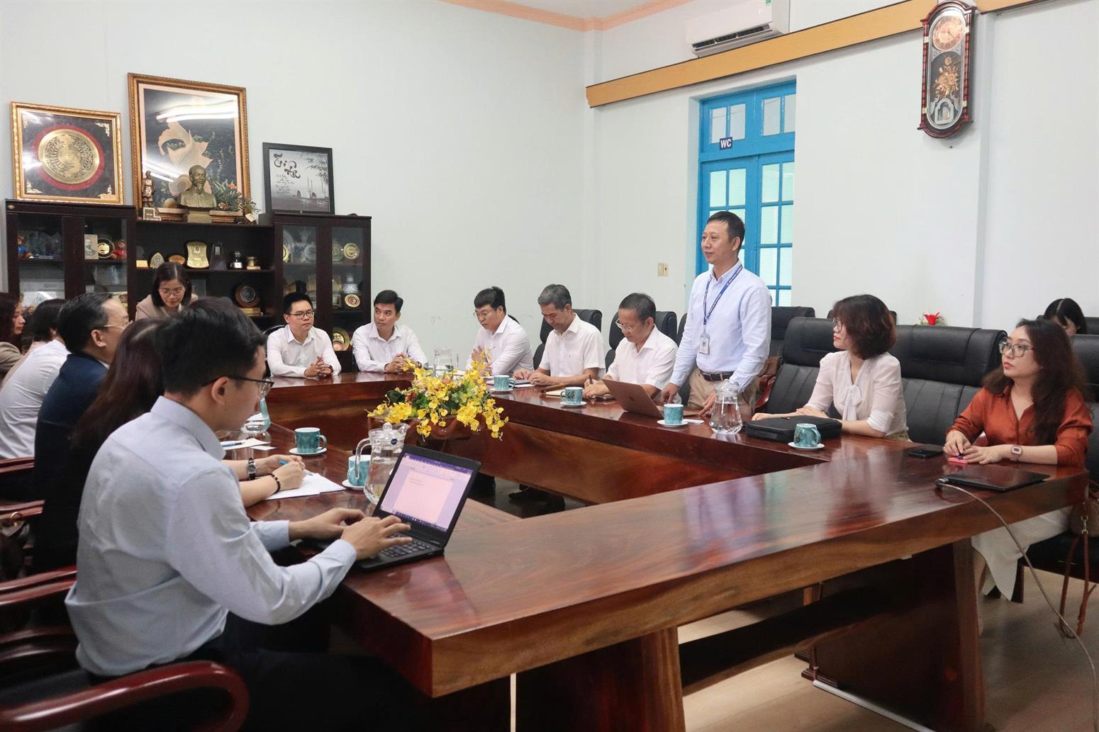 Tại đây, Đoàn Công tác được đồng chí Trần Doãn Hùng, Phó Hiệu trưởng Nhà trường và lãnh đạo các đơn vị thuộc Trường như Phòng Tổ chức – Nhân sự, Khoa học công nghệ, Phòng hợp tác quốc tế; Phòng Đào tạo Đại học, Lãnh đạo Khoa Khoa học xã hội, Chủ nhiệm chương trình đào tạo luật, Trưởng Bộ môn Luật tiếp đón nồng hậu và thân tình.