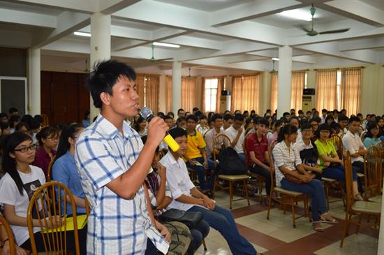 Tiếp đó, ThS. Đỗ Thị Bích Nguyệt – Phó Trưởng phòng QLĐT cũng đã phổ biến một số nội dung trọng tâm của năm học 2015 – 2016, phổ biến chế độ chính sách, học bổng, học phí, công tác tư vấn và hỗ trợ sinh viên, cũng như công tác ổn định tư tưởng, chính trị trong sinh viên…